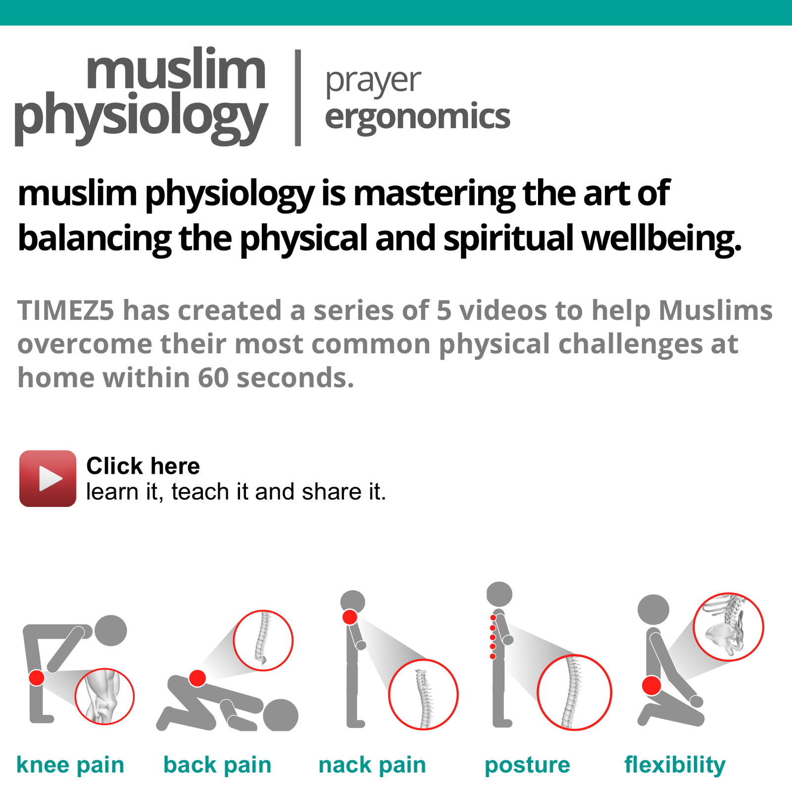 Muslim physiology is mastering the art of balancing the physical and spiritual wellbeing. These 5 videos will help you overcome your most common physical challenges with these simple exercises anyone can do within 2 minutes at home.